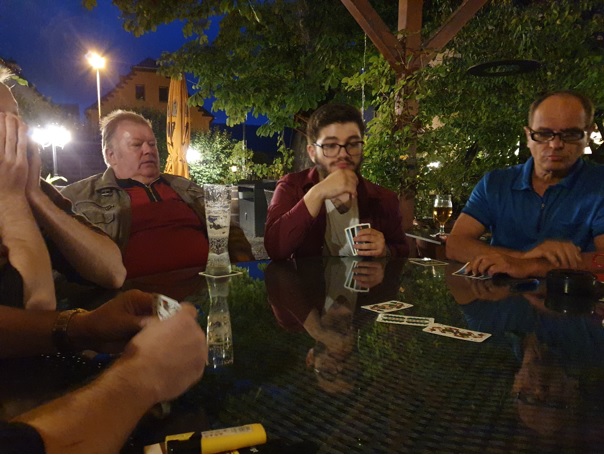 Der Pokerabend wurde zunächst mit einem leckeren Essen im Gasthof "Zur Kastanie" in Gerichshain eröffnet. Erst einmal Stärken, bevor die ernsten Mienen aufgesetzt, die Karten verteilt und die Kasse eröffnet wurde. In gemütlich, kleiner Runde, konnte dann jeder beweisen, wer wirklich ein absolutes Pokergesicht aufhat und wer nicht ganz so gut verbergen konnte, wie sein Blatt aussieht. Ein Gemisch aus lustigen Gesprächen und ernsten Blicken, das Spiel nicht aus den Augen verloren, hat unserer Mitarbeiter Herr Drews schlussendlich alle an die Wand gepokert und gewonnen. Der Abend fand in ruhiger Runde, einen erfolgreichen Ausklang.